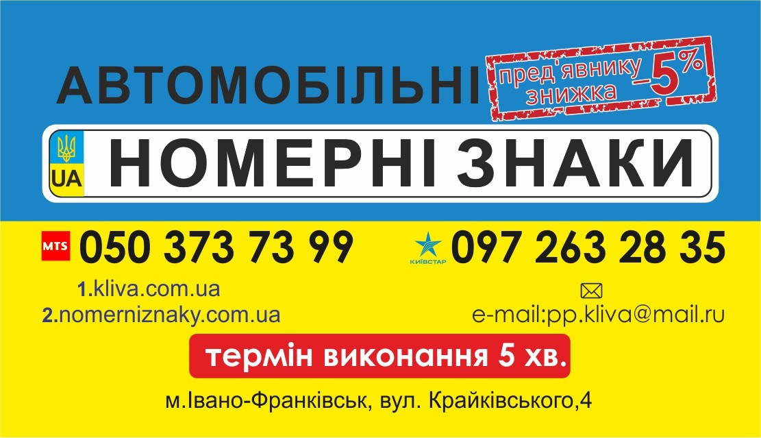 Стандартний номерний знак-250грн