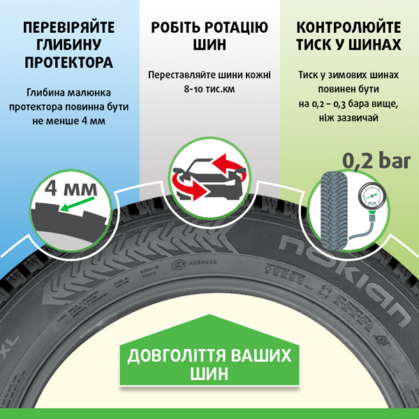Певна частина зовнішнього шуму під час проїзду автомобіля утворюється шинами. Вибір шин із гарним показником шуму зменшить вплив вашого автомобіля на довкілля.