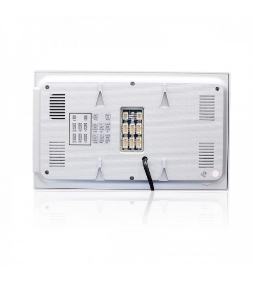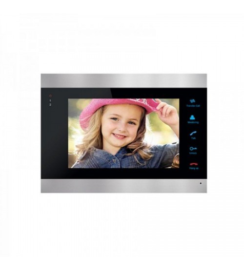 Цветной видеодомофон, экран 7", Handsfree, стандарт PAL/NTSC, поддержка 2х вызывных панелей и 2x видеокамер, сохранение фото ,видео , тревожные входы по каждой камере (nc , no),тревожное оповещение , отображение камеры при тревоге , запись по тревоге . управление замком, функция интерком. Регулировка громкости звонка 3 временных зоны выбор мелодий (12 мелодий) , регулировка яркости, контрастности.