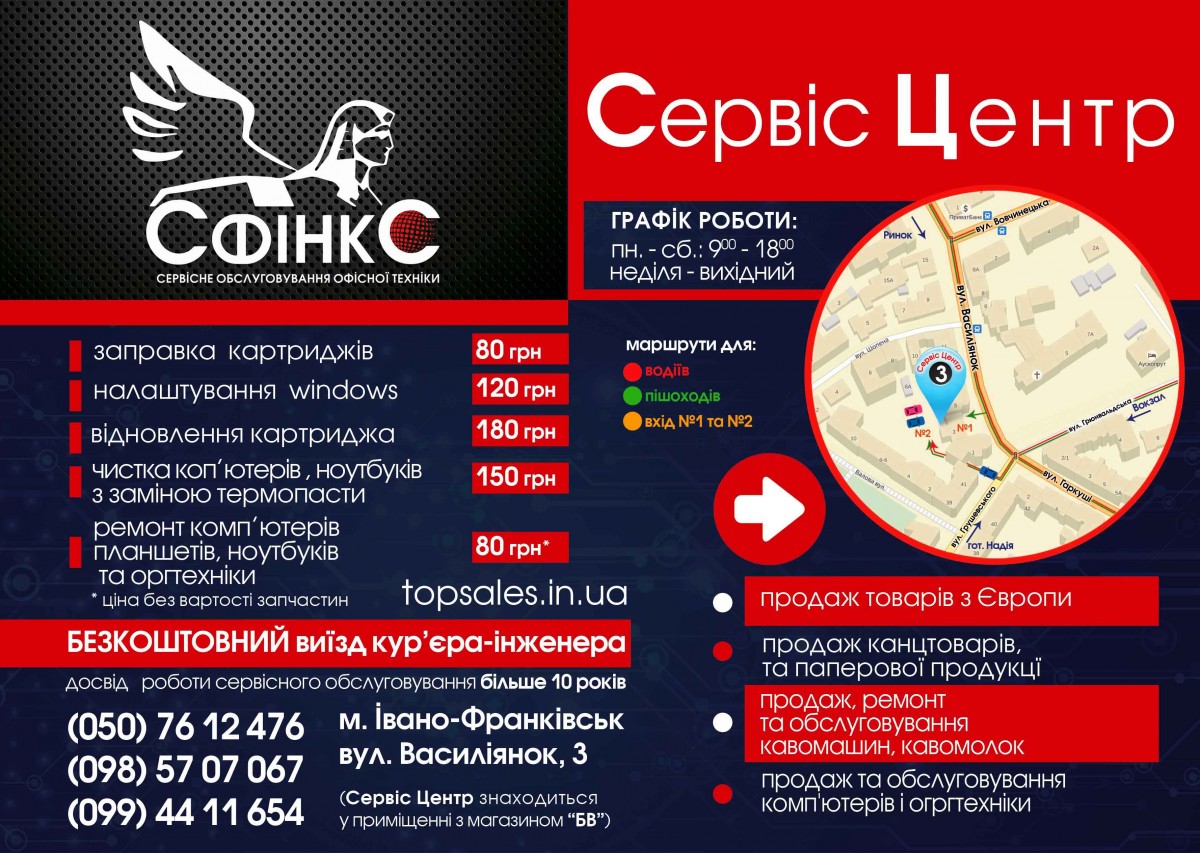Заправка та відновлення картриджів; ремонт та обслуговування факсів, принтерів, копіювальних апаратів, сканерів, ; ремонт та обслуговування ноутбуків, нетбуків, планшетів, комп’ютерів, ББЖ; та іншої офісної техніки; налаштування програм, комп'ютерна допомога ;